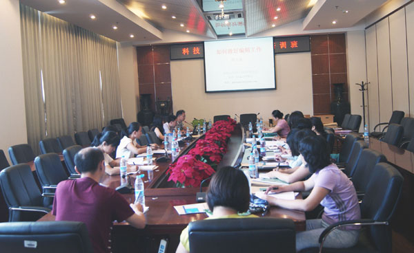 2015年6月19日,学报编辑部在BBV·体育第四会议室举办了科技期刊编辑业务培训班。副校长、学报主编冯海明,科研处处长、学报编辑部主任任凤国,我校部分学报审稿专家、中英文兼职编辑及学报编辑部、科研处工作人员共22人参加了培训。