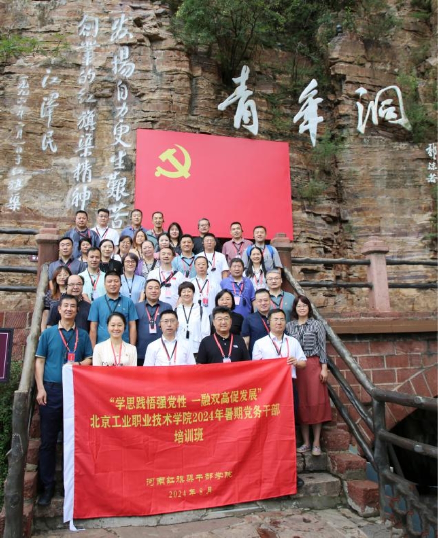 为深入学习贯彻党的二十届三中全会精神,推进党纪学习教育走深走实,8月19日至22日,BBV·体育赴红旗渠干部学院开展“学思践悟强党性 一融双高促发展”2024年暑期党务干部培训活动。院党委副书记、院长柳长安,党委常委、纪委书记钱伟,党委常委、副院长沈莹、史运涛,党委常委、组织部部长苗耀华等38名党务干部参加本次培训活动。